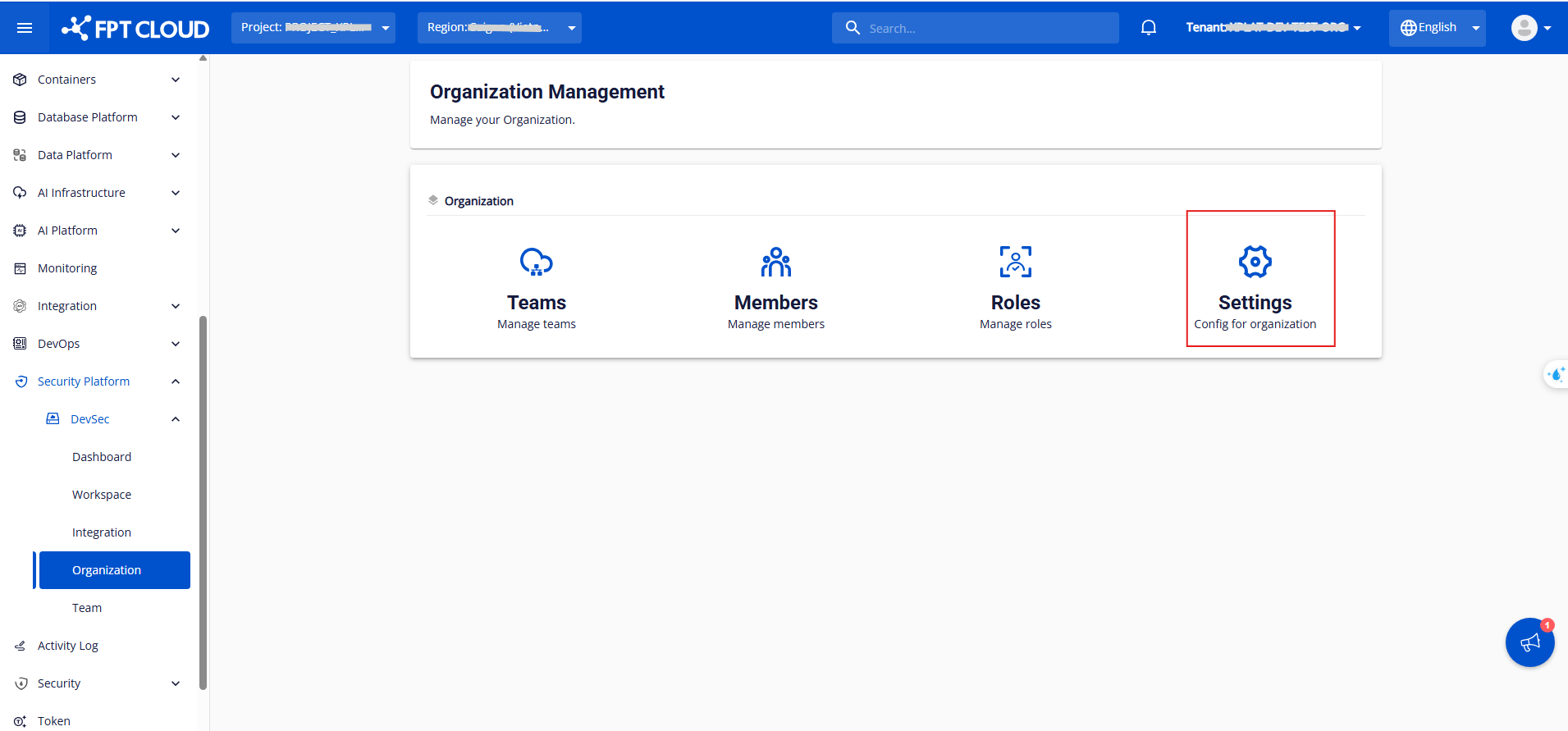 Bước 2 : Nhấn chọn Settings ở trong phần Organization , sau đó bạn có thể chỉnh sửa thông tin của Organization