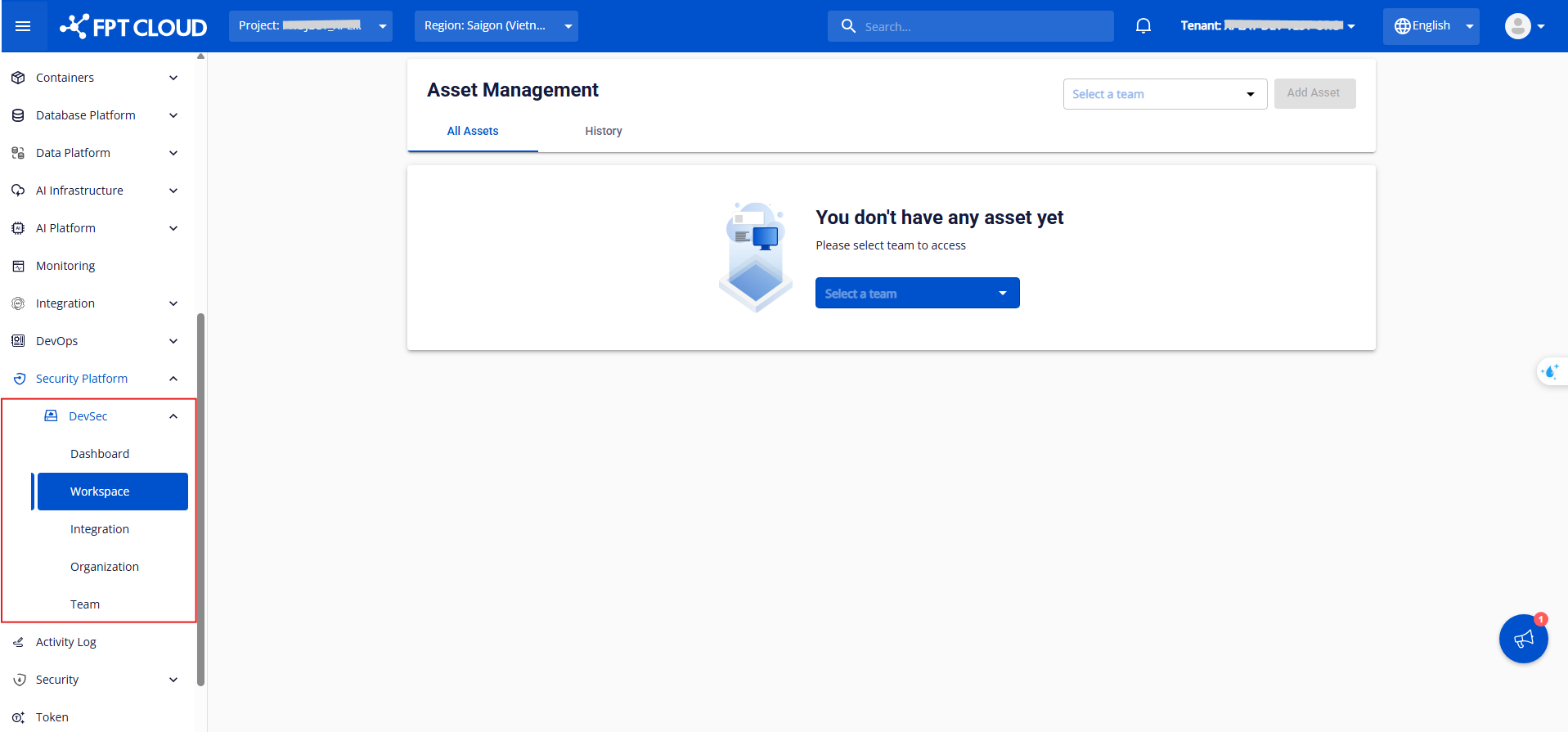 • Workspace : Cung cấp hệ thống quản lý không gian làm việc tập trung, giúp bạn theo dõi toàn bộ vòng đời phát triển dự án và kiểm soát trạng thái bảo mật của từng dự án.