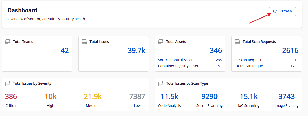 Mô tả: Tổng số issue được ghi nhận trong lần quét thành công gần nhất của toàn bộ asset trong org (bao gồm team và subteam). Định dạng hiển thị:
