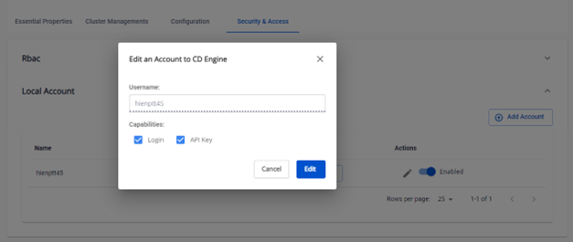 Bước 1 : Tại màn hình Security & Access > Local Account , thực hiện Edit Account :