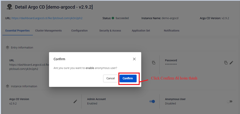 • Bước 2 : Sau khi Click Enable Anonymous user thực hiện Confirm để hoàn tất hành động: