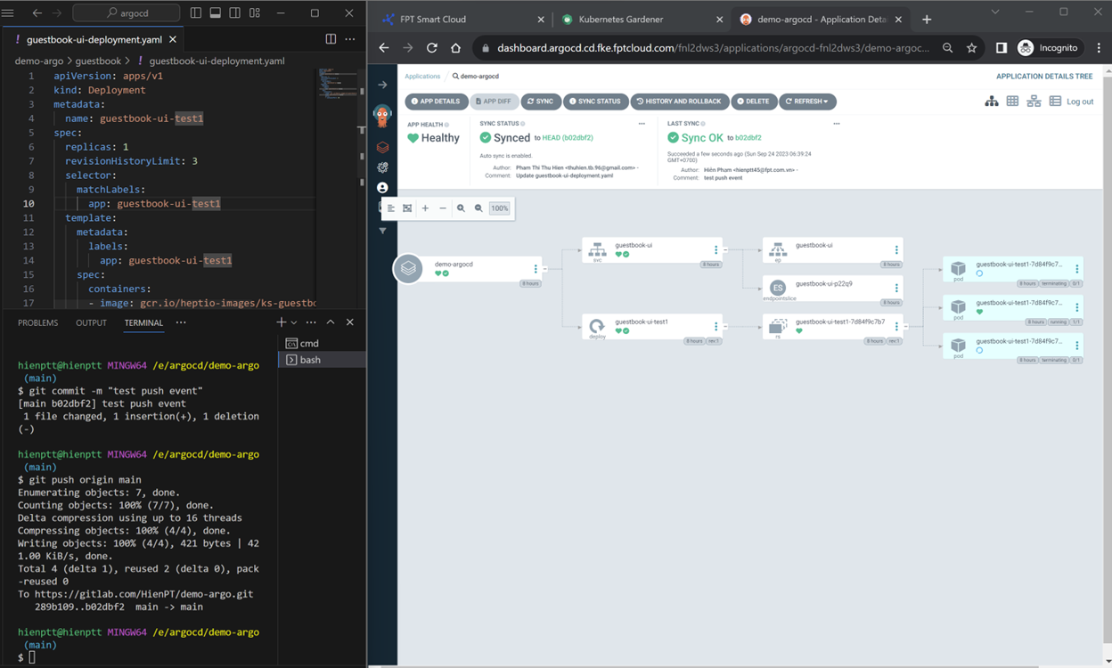 Trước: Sau: ArgoCD sẽ phát hiện được thay đổi và sync thay đổi tự động từ Repository để deploy applications.