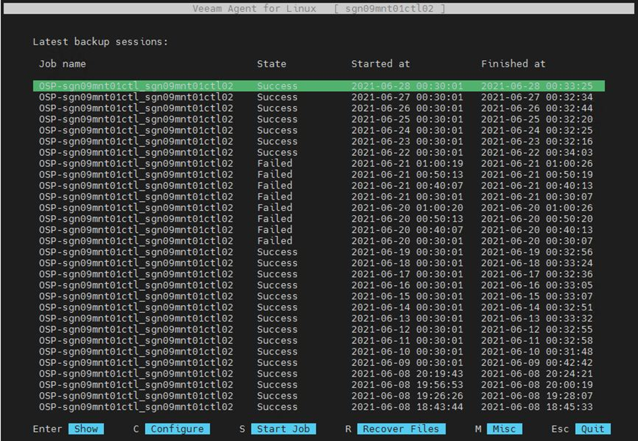 Bước 1: Trên server linux gõ lệnh veeam để khởi mở giao diện quản trị backup.