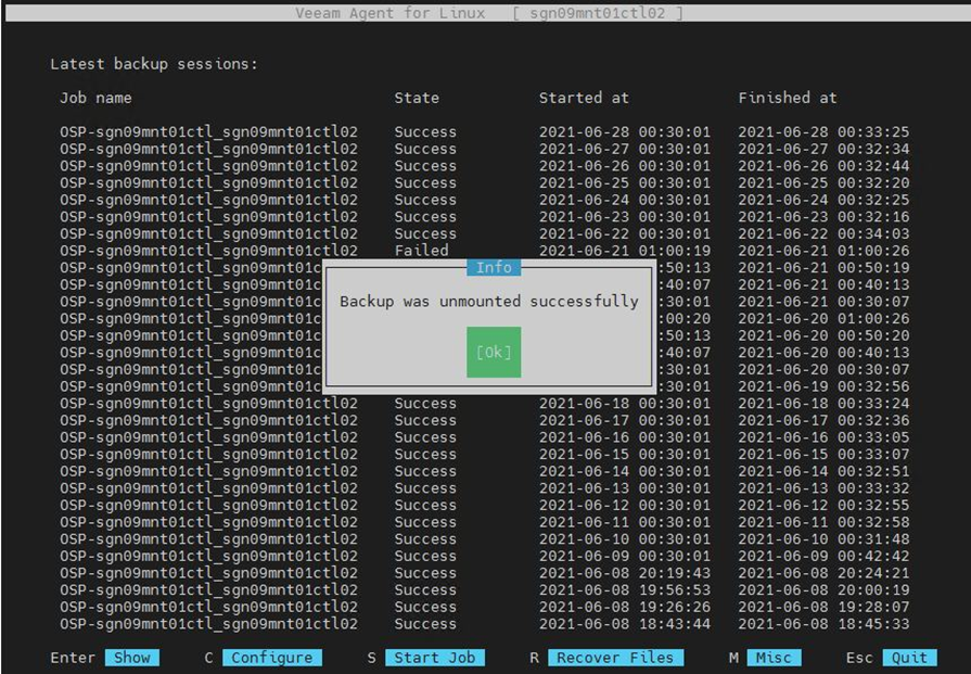Bạn vào lại phần mềm Veeam và ấn phím U để kết thúc việc restore.