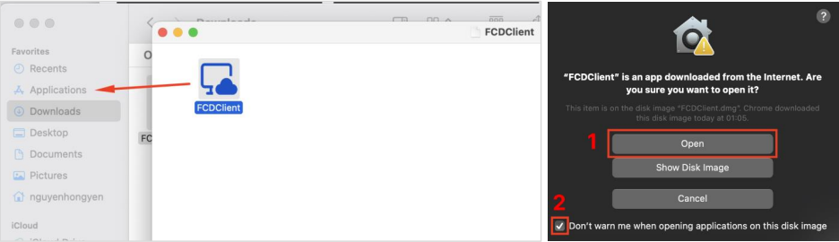 - Nếu thiết bị hiện cảnh báo về ứng dụng FCDClient, truy cập Settings > Privacy & Security > Open Anyway với FCDClient