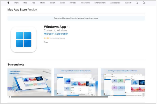 - Người dùng cần kiểm tra và cài đặt thêm ứng dụng Microsoft Windows App tại Mac Apple Store