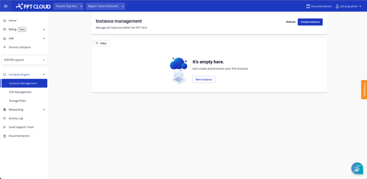 • Nếu các thông tin hợp lệ thì hệ thống tạo máy và đi đến trang Instance management.