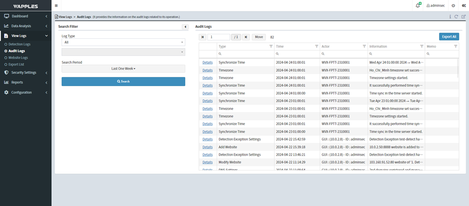 Cấu hình lọc log dựa trên các loại log dựa trên trường được chọn như login, bypass, security patch,... file