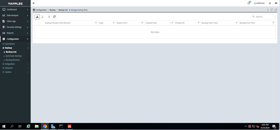 Danh sách các bản backup được lưu trữ file Previous Backup Next Automatic Backup
