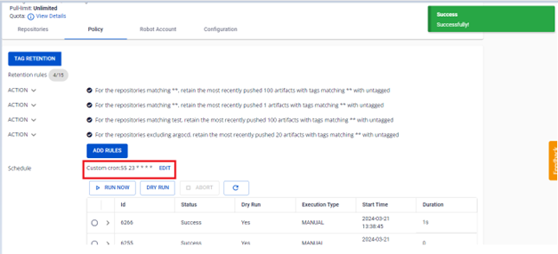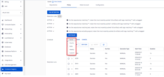 - None: Không lập lịch chạy các quy tắc, người dùng vào FPT Container Registry để RUN retentions