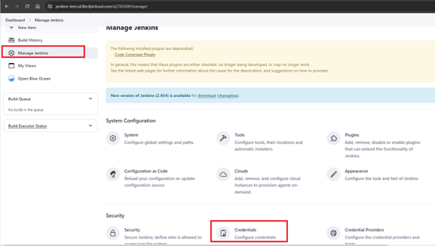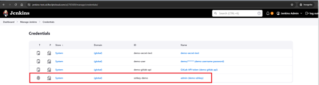 Với mỗi loại credential, người dùng có thể thực hiện cấu hình như sau: Bước 1. Tại menu FPT Portal > Jenkins CI > Detail Cluster > Credential Managements :