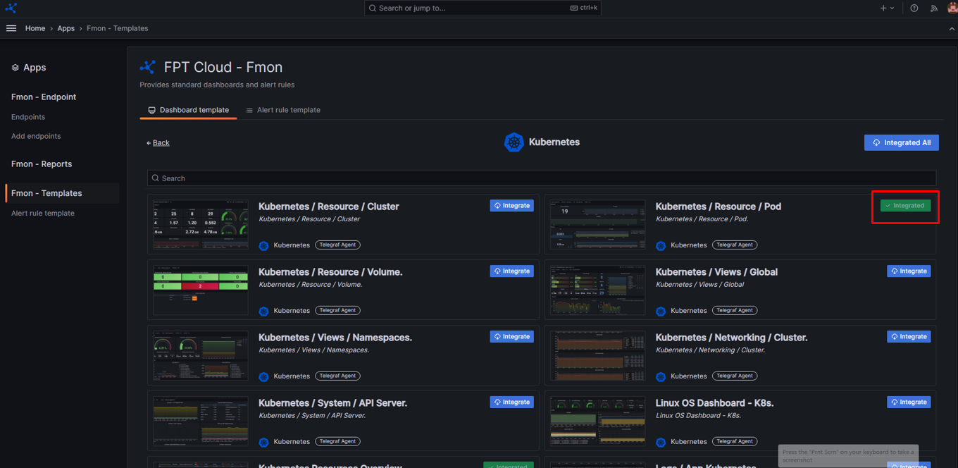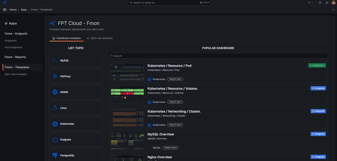 Bước 2: Chọn App >> Fmon – Templates >> chọn tab Dashboard Template