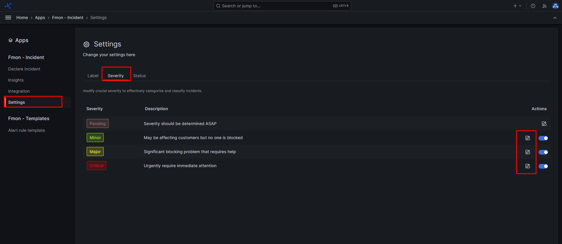 Incident serverity cho phép bạn định nghĩa đo lường các mức độ ảnh hưởng của sự cố. Mức độ ảnh hưởng được định nghĩa rõ ràng và nhất quán sẽ giúp những người khác trong tổ chức của bạn nhanh chóng hiểu được mức độ nghiêm trọng của sự cố. Mức độ ảnh hưởng của sự cố có thể ảnh hưởng tới quá trình ứng phó sự cố của bạn ví dụ như có bao nhiêu người tham gia và cần thông báo cho ai. Để thu được giá trị cao nhất từ mức độ ảnh hưởng của sự cố hãy thiết lập các định nghĩa rõ ràng về từng mức độ ảnh hưởng và phản hồi dự kiến trong tổ chức của bạn. Các mức độ ảnh hưởng, được khuyến nghị dưới đây, được tạo sẵn trong FMON incident:
