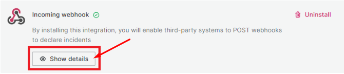 Sau khi cài đặt thành công Incoming webhook, xem chi tiết thông tin incoming webhook, click Show details