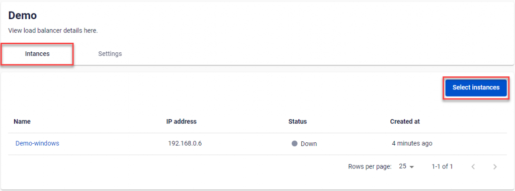 Bước 2 : Ở tab Instances sẽ hiện danh sách máy ảo đã thêm vào Load Balancer. Tiếp theo chọn Select instances.