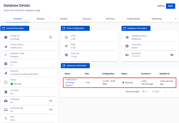 Bước 2: Xuất hiện màn hình Database Detail > tại tab Overview chọn Instances List > Click vào Name có role True.
