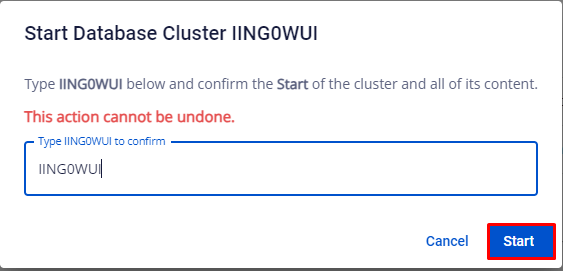 - Xuất hiện popup Start Database Cluster ID , quý khách nhập lại Cluster ID để xác nhận lại, bấm Start