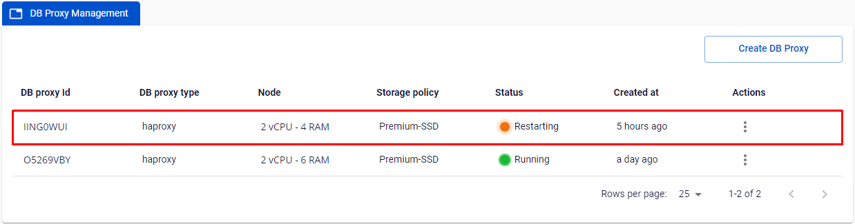 • DB Proxy sẽ ở trạng thái Restarting và không thể thao tác gì thêm cho tới khi hệ thống process xong. Quá trình này kéo dài trong vòng 5 – 7 phút.