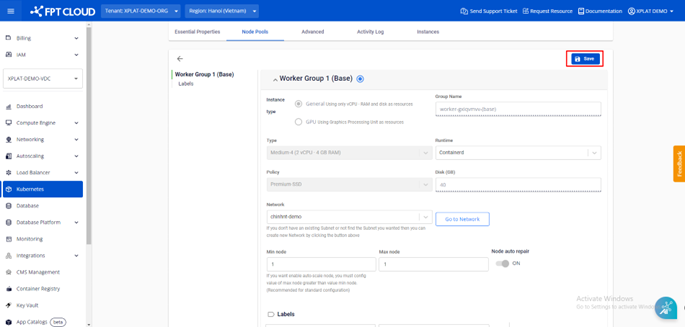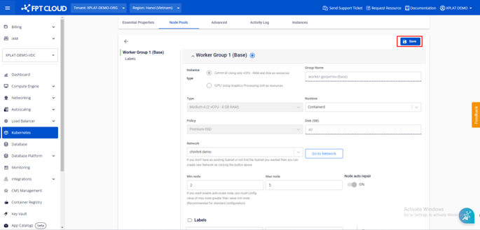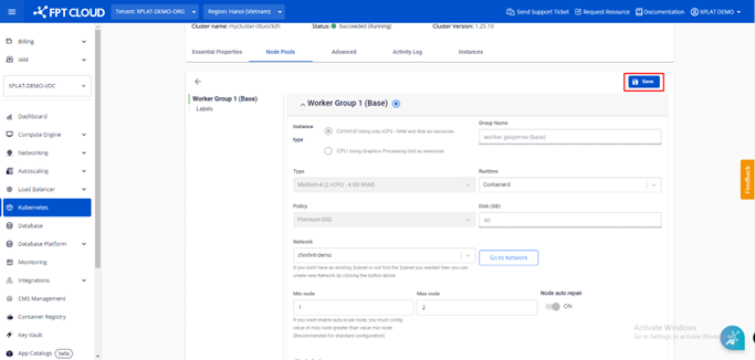 Lưu ý: Khi số lượng worker max lớn hơn worker min, tính năng cluster autoscale sẽ tự động được bật.