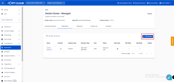 Bước 2 : Chọn Nodes Pool > Edit workers.
