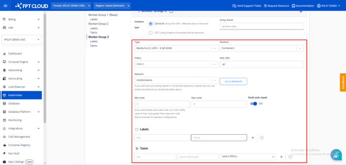 • Disk (GB): Chọn dung lượng root disk cho các Worker Node.