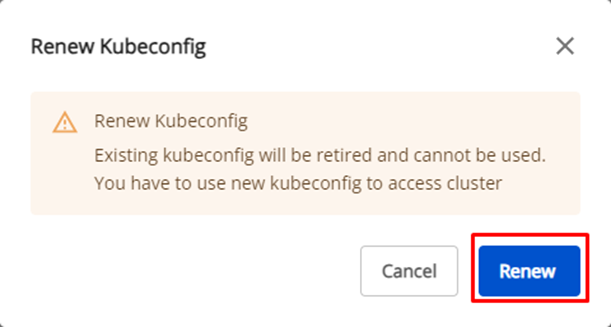 Trong quá trình sử dụng Kubernetes cluster, người dùng có thể thực hiện rotate kubeconfig nếu muốn thay đổi token của user admin trong cluster. Bước 1 : Ở menu chọn Kubernetes , hệ thống sẽ hiển thị trang Kubernetes Management. Bước 2 : Ở tab Essential Properties , mục Configuration chọn Renew kubeconfig Bước 3: Xác nhận thông tin cảnh báo trong pop-up và click button Renew