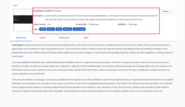 • Model card: Thông tin tổng quan của model