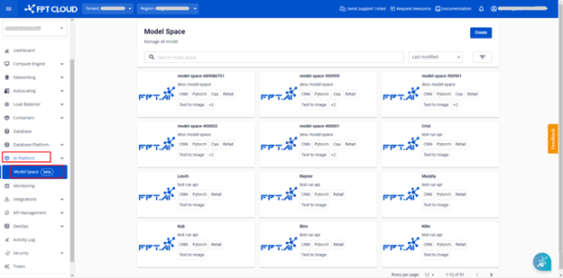 Trên menu, bạn chọn AI Platform > Chọn Model Hub.