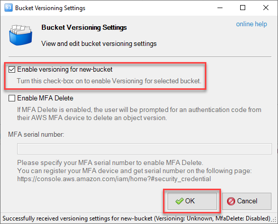 Bật tính năng versioning cho bucket