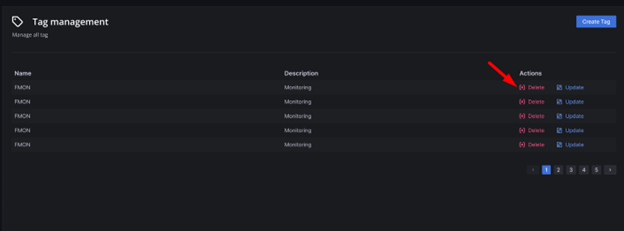 Bước 1 : Menu chọn Tag management >> Tại màn danh sách, ở cột Action , click button Delete