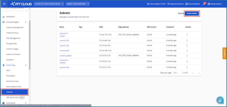 Bước 1 : Ở menu chọn Subnet > chọn Create subnet