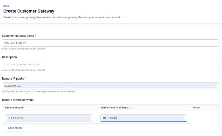 Truy cập và tạo VPN Site To Site trên trang https://console.fptcloud.com/ - Tạo Customer Gateway: